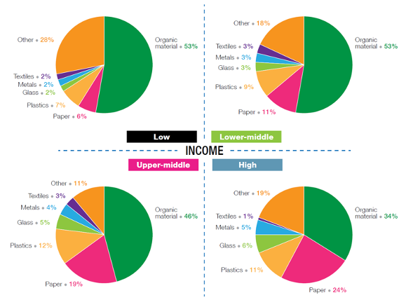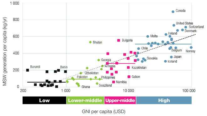 Waste generation versus income level by country, UNEP/ISWA (2015)
